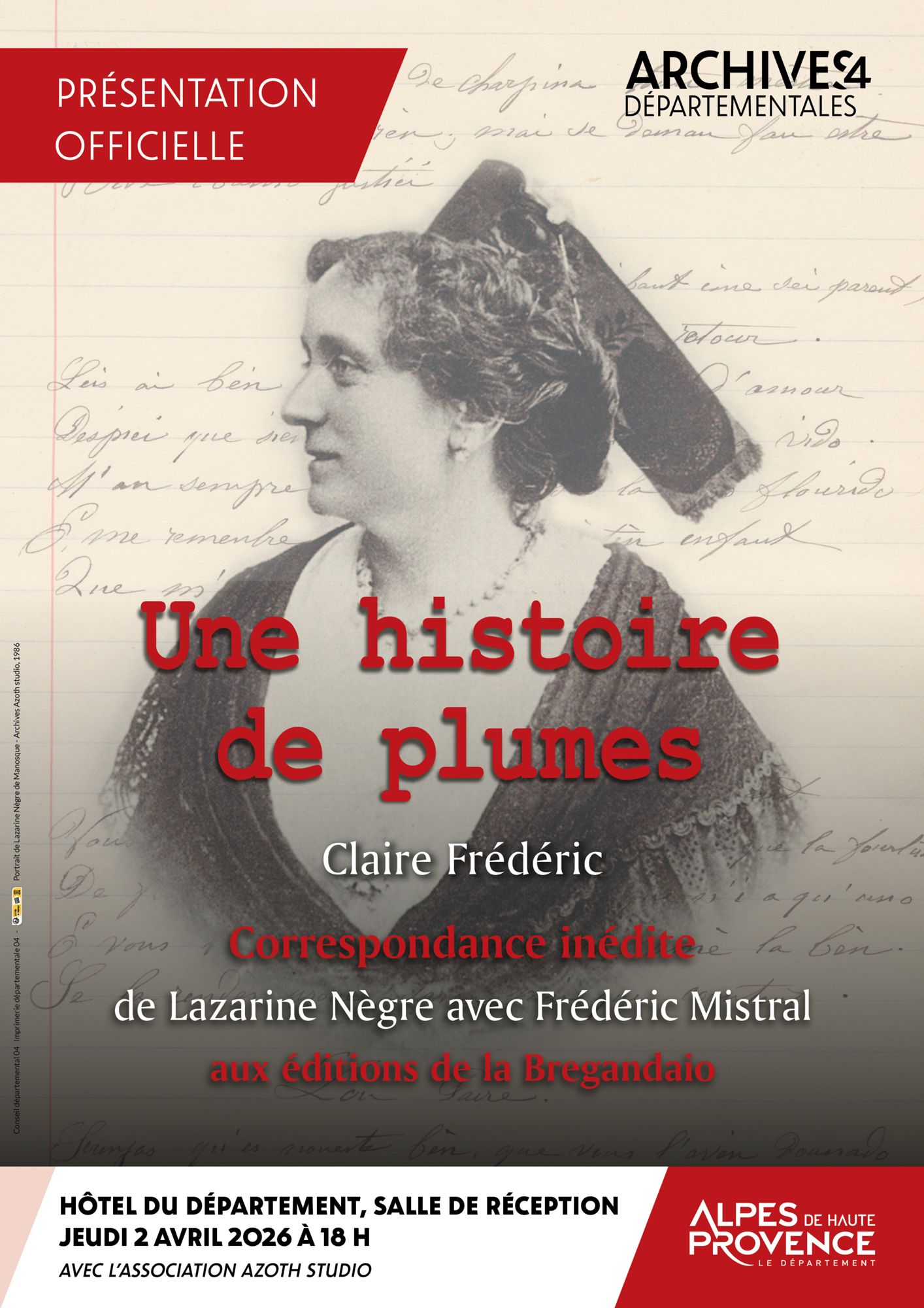 En 1986, Claire Frédéric publiait chez Alpes de Lumière la première biographie de la poétesse manosquine Lazarine Nègre (1848-1899). Elle s’attelait à une suite consacrée à la correspondance en langue provençale entre la Muse du Mont d’Or et le Maître du Félibrige, Frédéric Mistral.