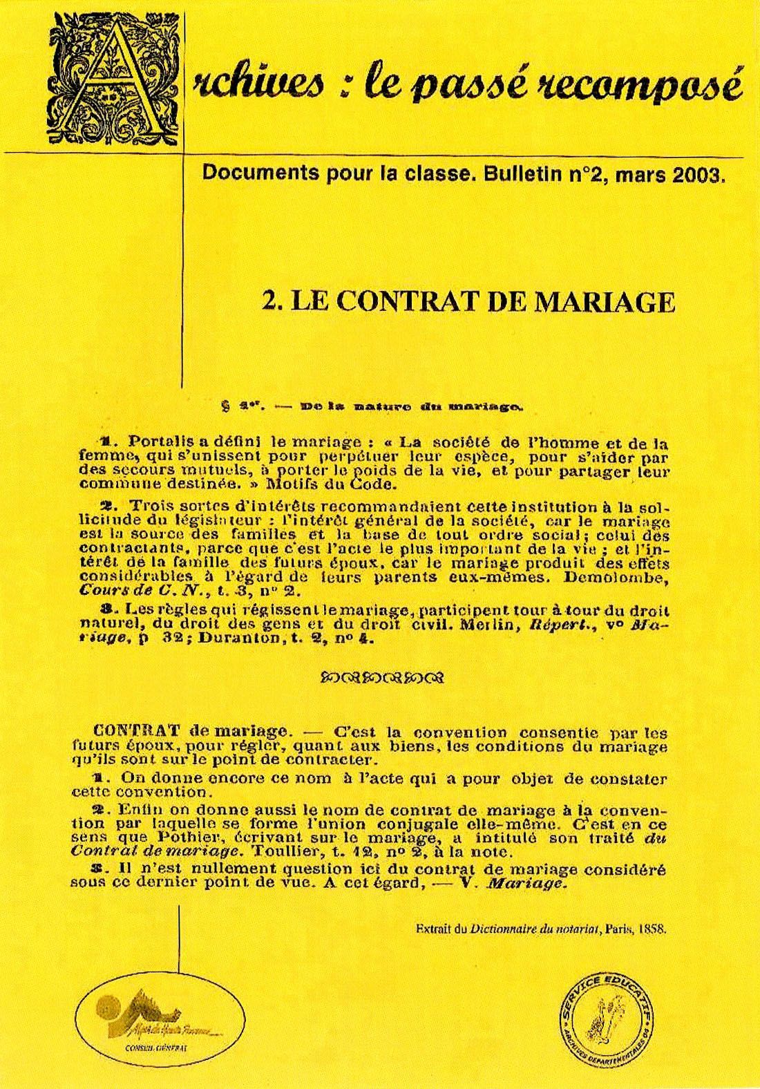 Archi'classe le contrat de mariage