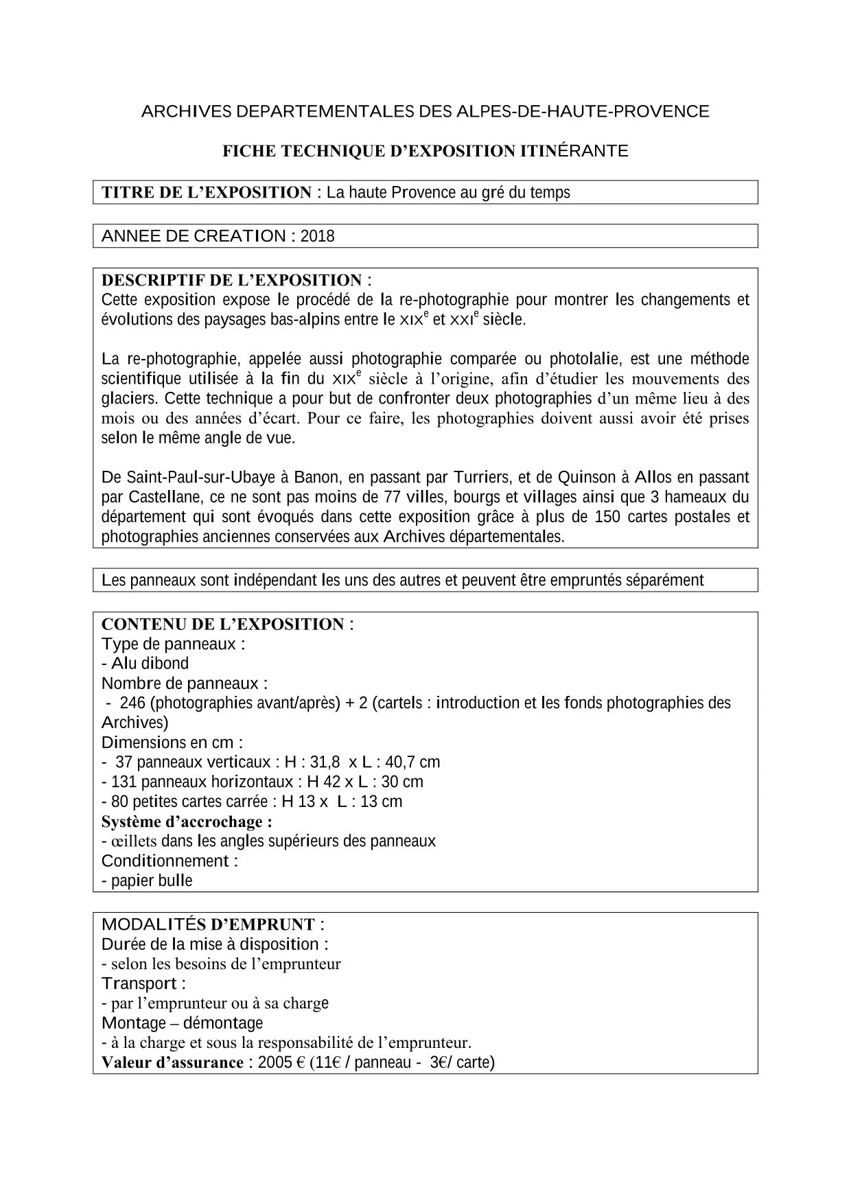 Cette exposition expose le procédé de la re-photographie pour montrer les changements et évolutions des paysages bas-alpins entre le xixe et xxie siècle.