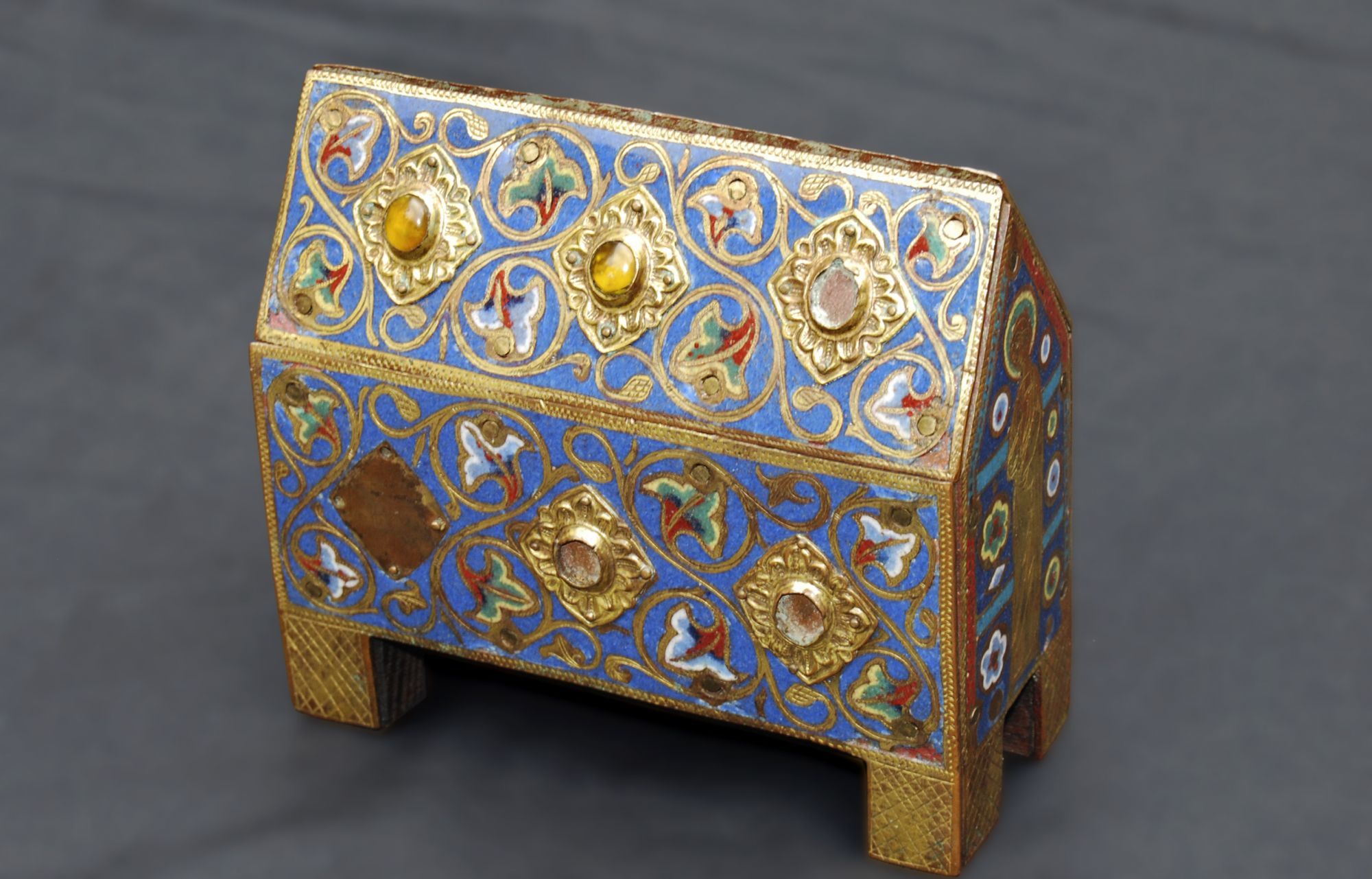 Il s’agit d’une châsse reliquaire de saint Blaise, datée du début du XIIIème siècle et réalisée en cuivre et en émail de Limoges.
