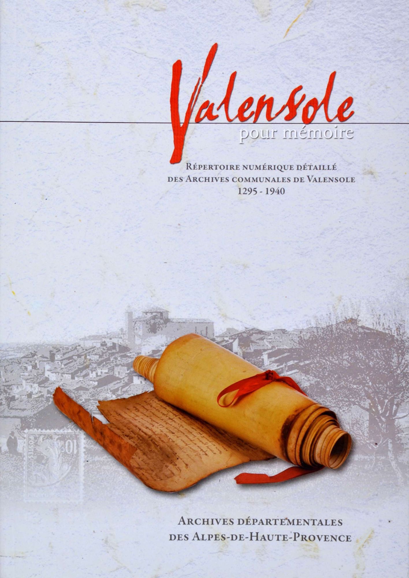 Valensole pour mémoire. Répertoire numérique des archives communales de Valensole, 1295-1940 Inventaire d’archives 2010, 143 p. Disponible ici en téléchargement Disponible ici en téléchargement (385.8 Ko)