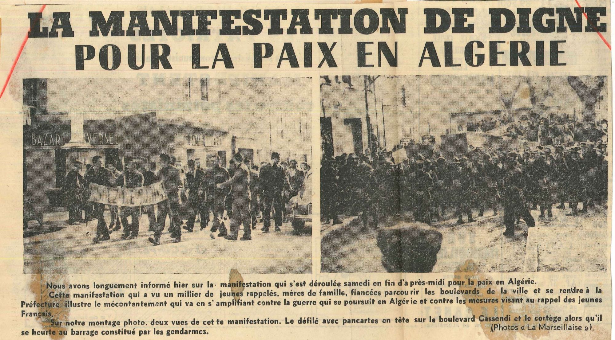 Atelier pédagogique : la guerre d'Algérie vue des Basses-Alpes La guerre d’Algérie vue des Basses-Alpes Niveau 3ème, terminale générale, terminale technologique, terminale professionnelle. Travail sur l’impact de la guerre d’Algérie et ses conséquences sur le département.
